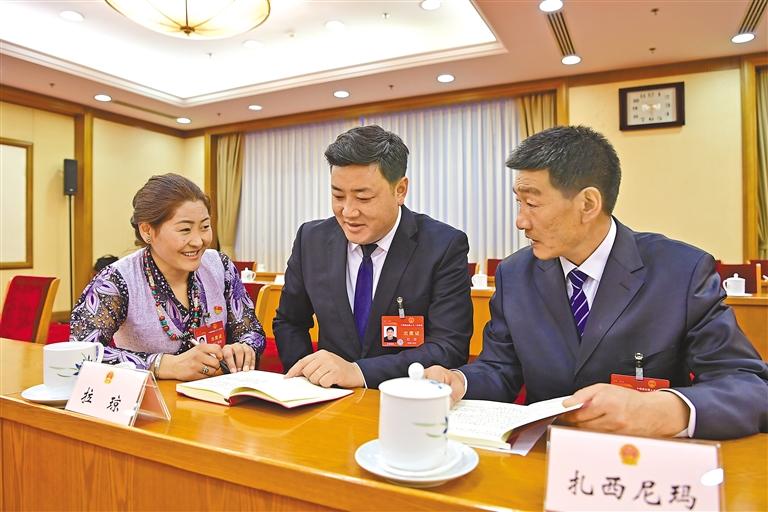 圖為全國(guó)人大代表在討論政府工作報(bào)告。記者 旦增西旦 攝
