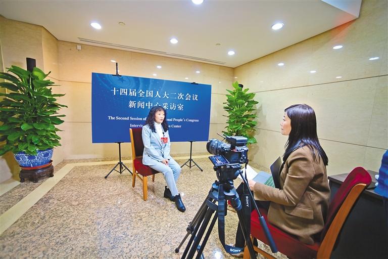 圖為全國(guó)人大代表白瑪措接受中央媒體采訪。記者 旦增西旦 攝