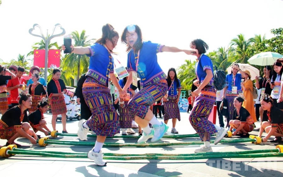 中國西藏網(wǎng)訊 11月26日,第十二屆全國少數(shù)民族傳統(tǒng)體育運動會民族大聯(lián)歡活動在海南省三亞市舉行?;顒訃@“民族大聯(lián)歡·天涯共此時”主題,分為歡迎儀式、游園部分、聯(lián)歡環(huán)節(jié)三個部分。其中,聯(lián)歡環(huán)節(jié)進行了由《心心相映》《山水相連》《熱情相擁》三個篇章組成的盛大文藝演出。(中國西藏網(wǎng) 記者/劉莉