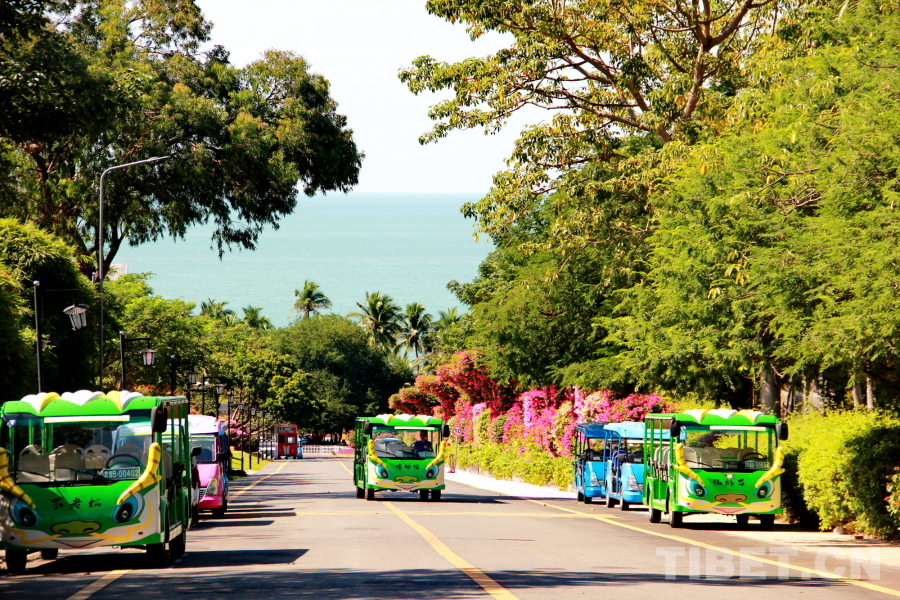 圖為海南三亞崖州灣國家5A級景區(qū)的大小洞天旅游區(qū)電動(dòng)觀光車 攝影:劉莉