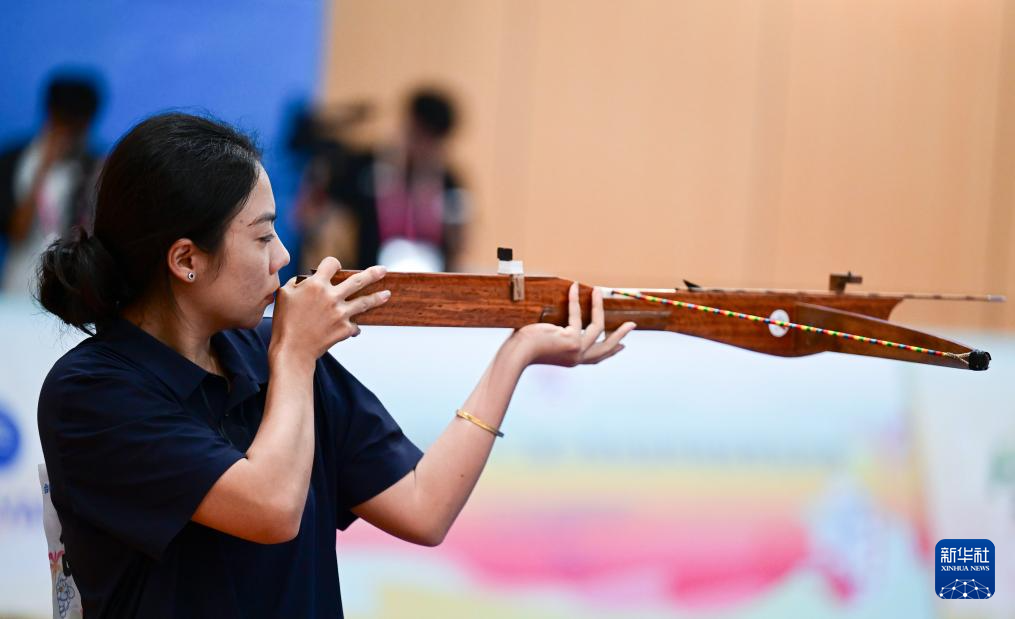 當(dāng)日,第十二屆全國(guó)少數(shù)民族傳統(tǒng)體育運(yùn)動(dòng)會(huì)射弩民族傳統(tǒng)弩混合團(tuán)體決賽在海南三亞舉行。