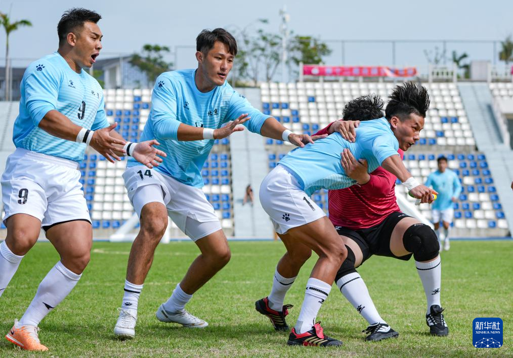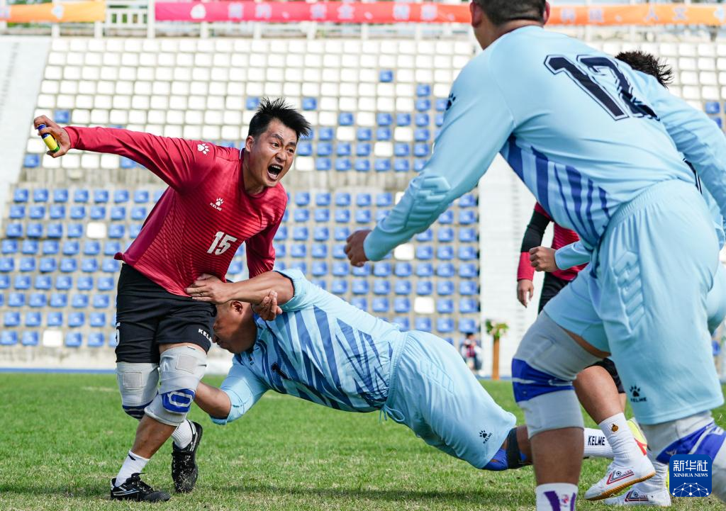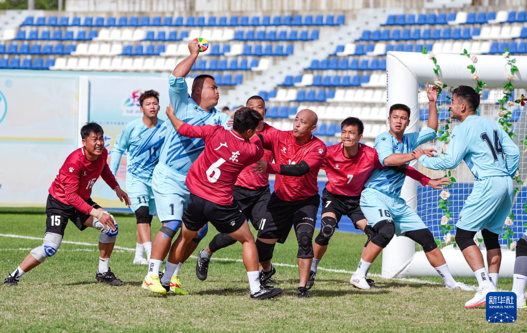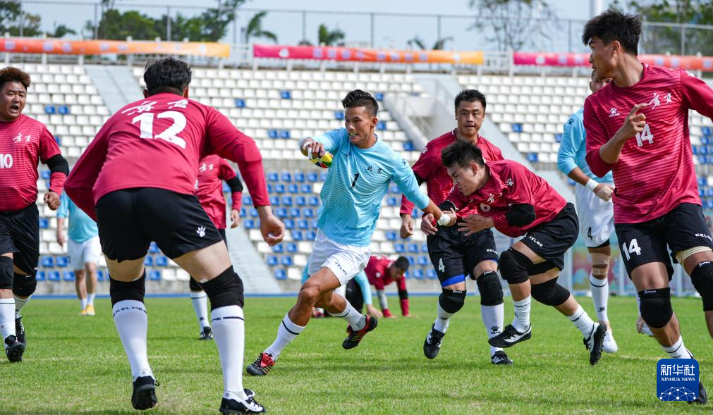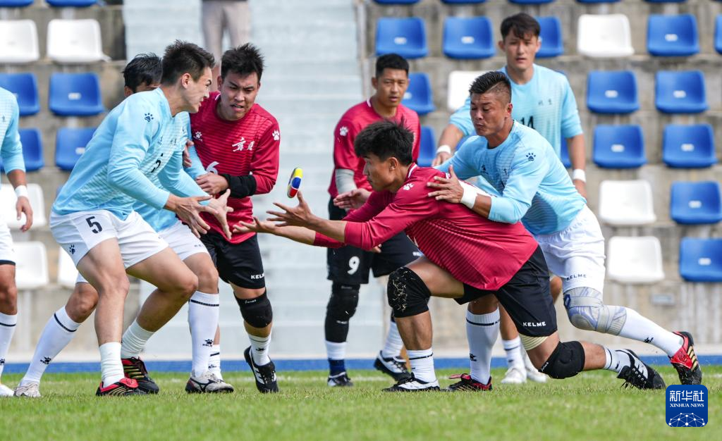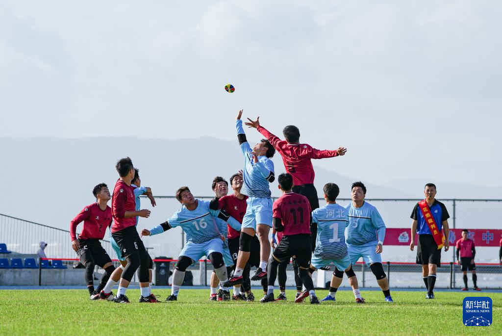 11月25日,廣西隊選手與河北隊選手在比賽中爭搶花炮。最終,廣西隊9比3戰(zhàn)勝河北隊。