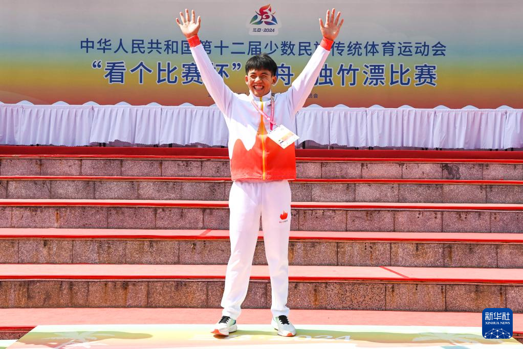 當(dāng)日,第十二屆全國少數(shù)民族傳統(tǒng)體育運動會獨竹漂男子組60米直道賽在海南省三亞市舉行。