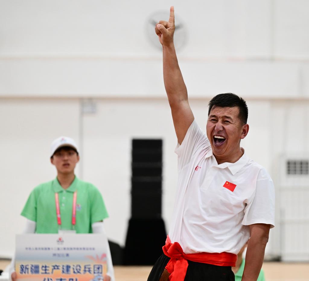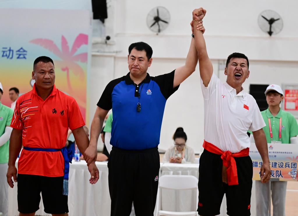 27日,第十二屆全國(guó)少數(shù)民族傳統(tǒng)體育運(yùn)動(dòng)會(huì)(以下簡(jiǎn)稱“運(yùn)動(dòng)會(huì)”)押加比賽迎來(lái)五個(gè)組別的最終爭(zhēng)奪。新疆生產(chǎn)建設(shè)兵團(tuán)選手提亞那克驚險(xiǎn)取勝,獲得85公斤級(jí)一等獎(jiǎng)。一場(chǎng)鏖戰(zhàn)后,他與來(lái)自海南的選手吉航敬擁抱致意。