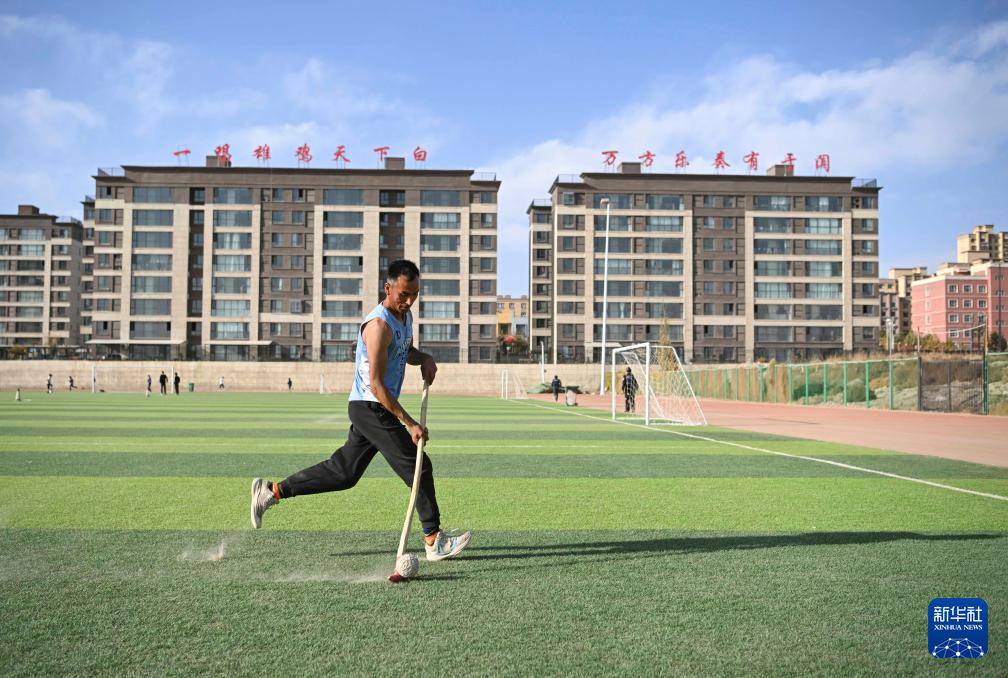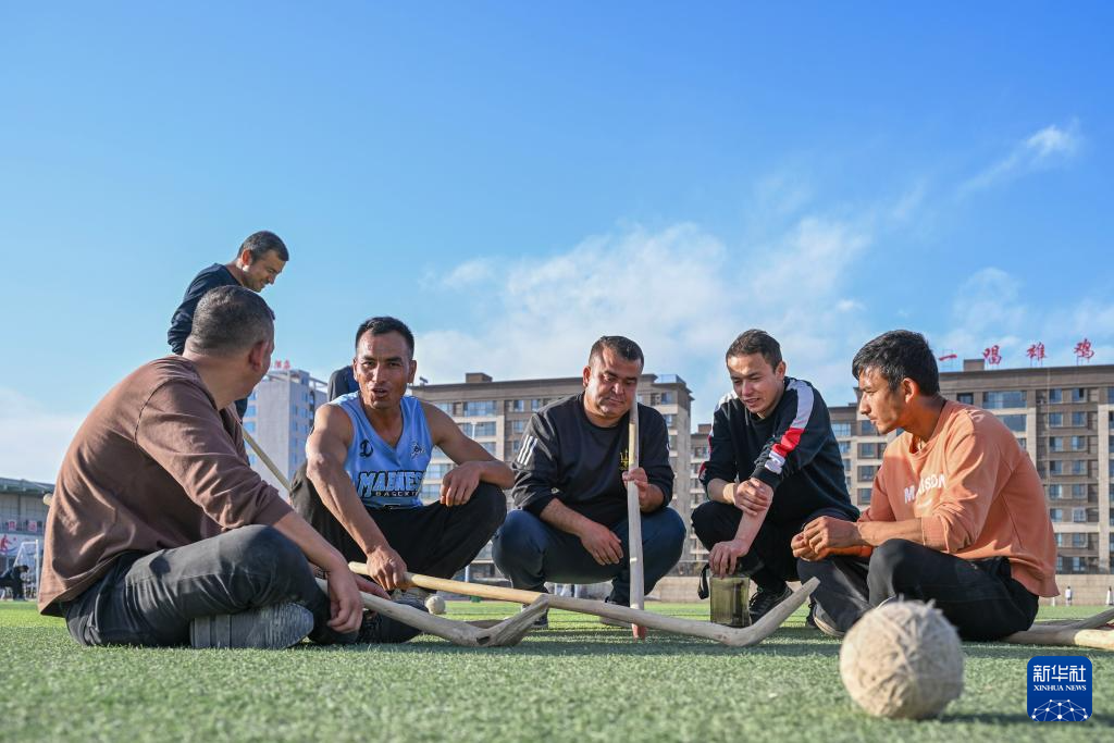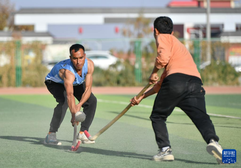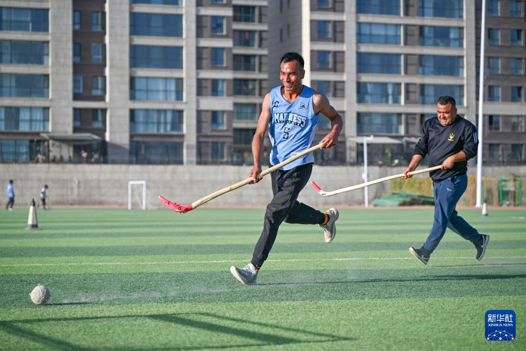 “麥熱球是一項非常古老的運動,我爺爺?shù)臓敔斈菚r候就開始玩?!卑⒉范爬蝿t說。麥熱球,又被稱為“維吾爾族曲棍球”,是在新疆和田地區(qū)廣泛流行的古老運動。規(guī)則類似于現(xiàn)代曲棍球,但是不設置守門員,把球打到對方球門里即為得分。2021年,這項運動(維吾爾族曲棍球)被正式列入國家級非物質文化遺產(chǎn)代表性項目名錄。阿卜杜拉艾孜則從很小就開始接觸麥熱球,在農(nóng)閑時他常常和兄弟們打上幾場麥熱球。他說:“小的時候,爸爸教會我打麥熱球,現(xiàn)在我要把這項運動帶來的快樂傳遞給更多人?!?/p>