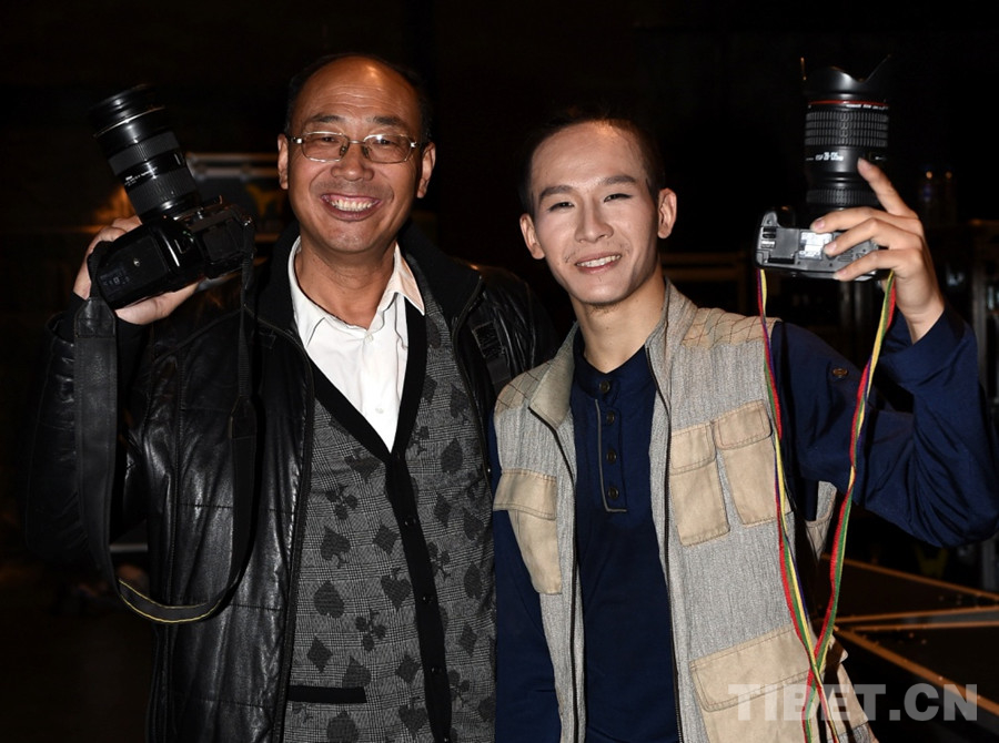 圖為唐召明(左)與《圓夢》歌舞劇策劃人朱強(右)在電力大學(xué)劇場演出結(jié)束后合影留念(唐召明2015年9月28日攝)