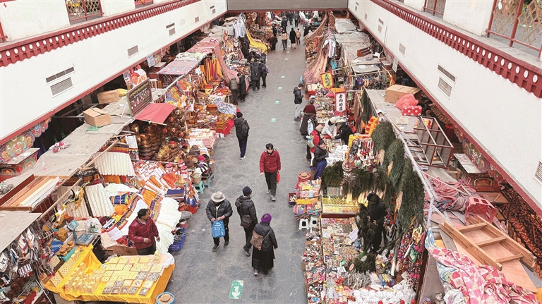 頓珠則在攤位前挑選了一款極具當(dāng)?shù)靥厣拈T簾。“冬天天氣冷,又趕上藏歷新年快到了,掛上門簾既能擋風(fēng)保暖,又能增添節(jié)日氛圍?!薄☆D珠說,八廓商城的一站式采購太方便了,吃的、喝的、穿的、用的一應(yīng)俱全,不用東奔西跑,省了不少時(shí)間和精力。