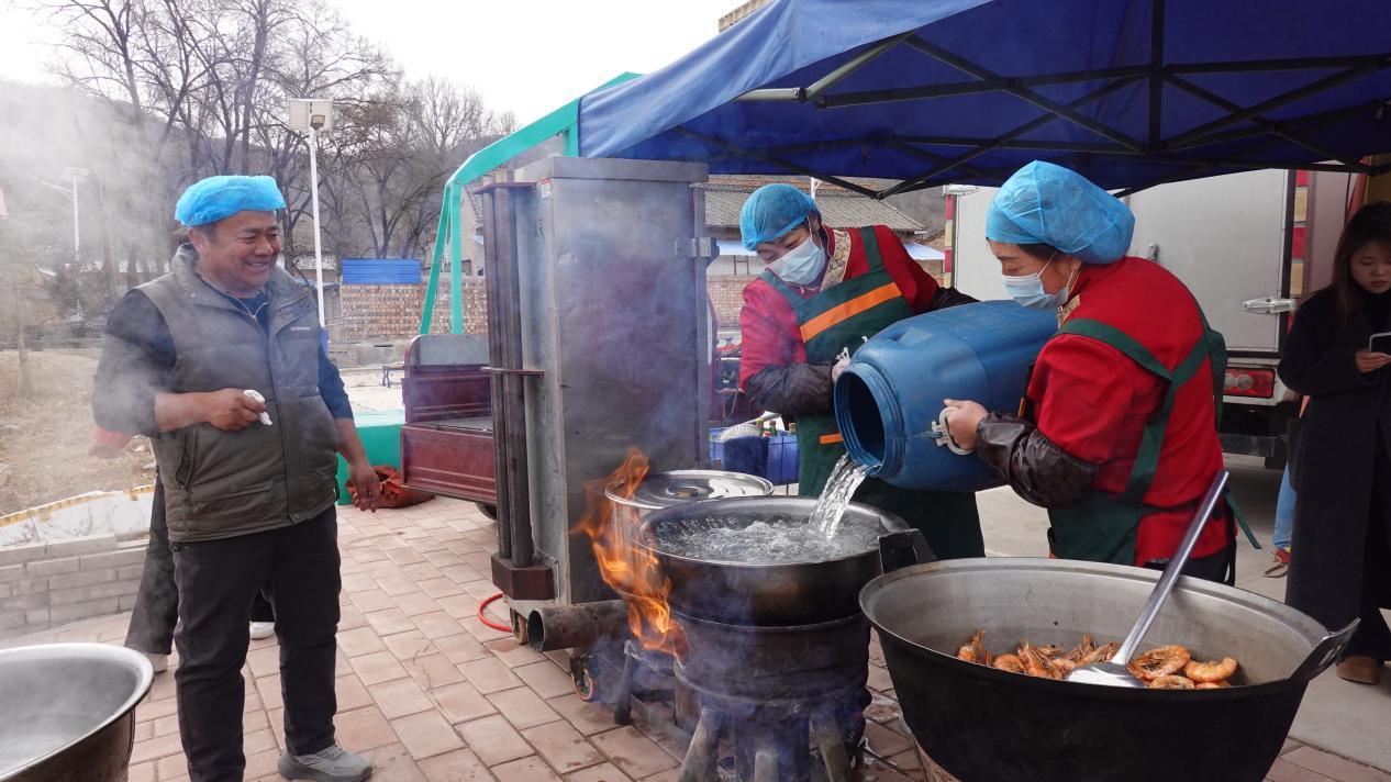 早上八點,天剛麻麻亮,食材加工間里已經熱氣騰騰。五個幫廚,加上鞏耀軍兩口子,七個人的團隊到齊了。不用吩咐,打水的、生火的、擦灶臺的,各干各的,利利索索。鞏耀軍說,大家伙跟著他這么多年都習慣了,該干什么都知道,不用他吩咐。