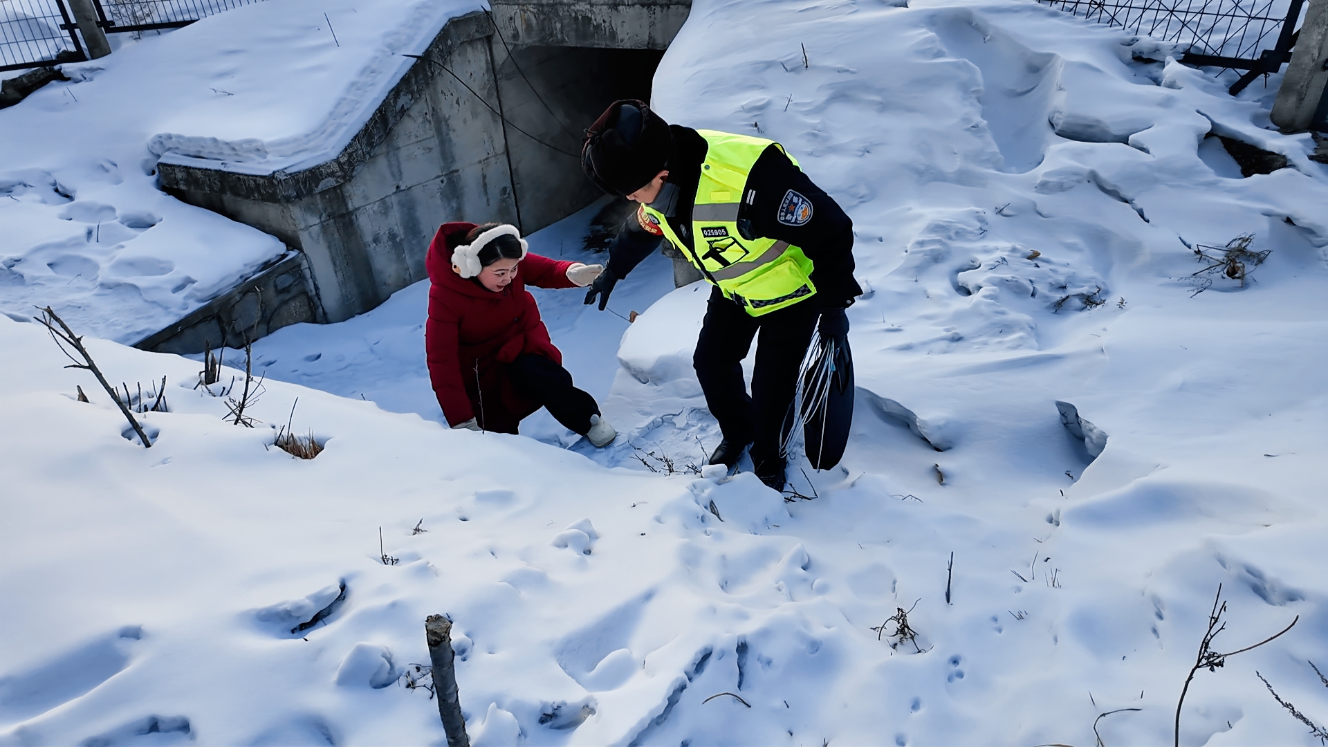 凌晨6時30分,我隨老薛踏上巡線路。今年已57歲的老薛,在雪地中步履輕盈。積雪沒踝,寒風(fēng)如刃,僅走半公里我便雙腳麻木。老薛負(fù)責(zé)安全巡視鐵路沿線22公里,32年來踏過春雪、夏汛、秋霜、冬寒,日復(fù)一日從未停歇;獨(dú)自駐站15年,3輛自行車被歲月磨壞。巡線時,他有一個時刻不離身的記錄本,里面記錄著每一處涵洞編號、每一段鐵軌隱患。彎腰查涵洞時,警帽積雪簌簌滑落,身材并不魁梧的他雙手布滿老繭,在固定標(biāo)語牌纏繞鐵絲時異常有力。