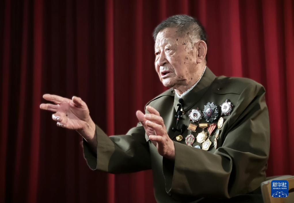 黃宗德接受采訪時(shí)講述自己的戰(zhàn)斗經(jīng)歷(2024年9月10日攝)。新華社發(fā)(靳憲彬 攝)