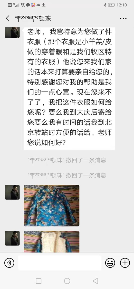 圖為次旦旺秋發(fā)給陳英姿老師的微信截圖