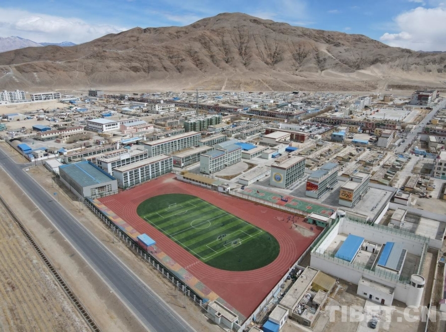 圖為河北援建的日土縣九年一貫制學(xué)校運(yùn)動場
