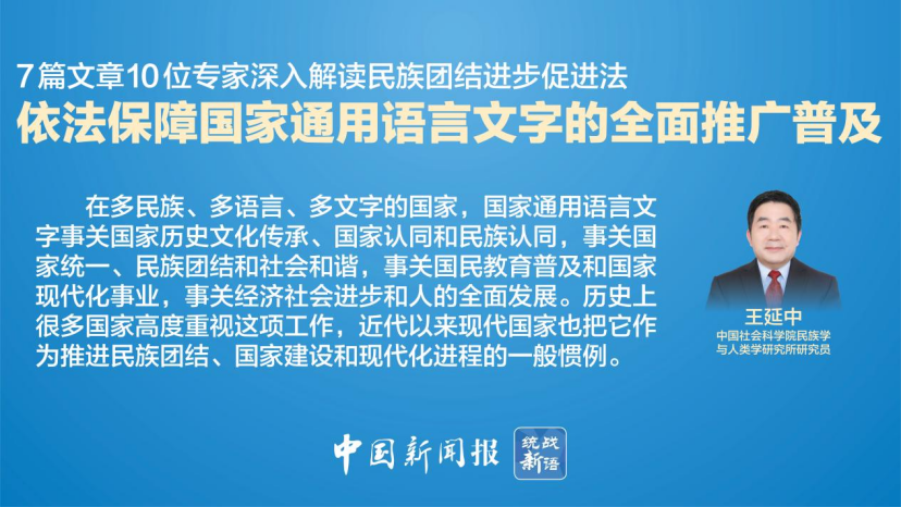 十四屆全國人大四次會議審議通過的民族團結(jié)進步促進法明確規(guī)定,“國家全面推廣普及國家通用語言文字。任何組織和個人不得妨礙公民學(xué)習(xí)和使用國家通用語言文字?!边@不僅明確了國家通用語言文字的法律地位,而且規(guī)定了國家對“通用語言文字”承擔(dān)“全面推廣普及”的責(zé)任。
