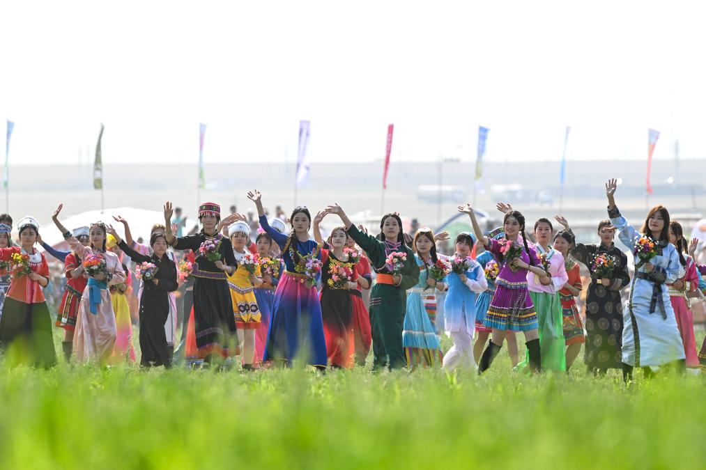 2024年7月14日,“相約草原·遇見那達慕”內(nèi)蒙古第34屆草原那達慕在錫林郭勒盟開幕,吸引游客前來感受草原文化。新華社記者 貝赫 攝