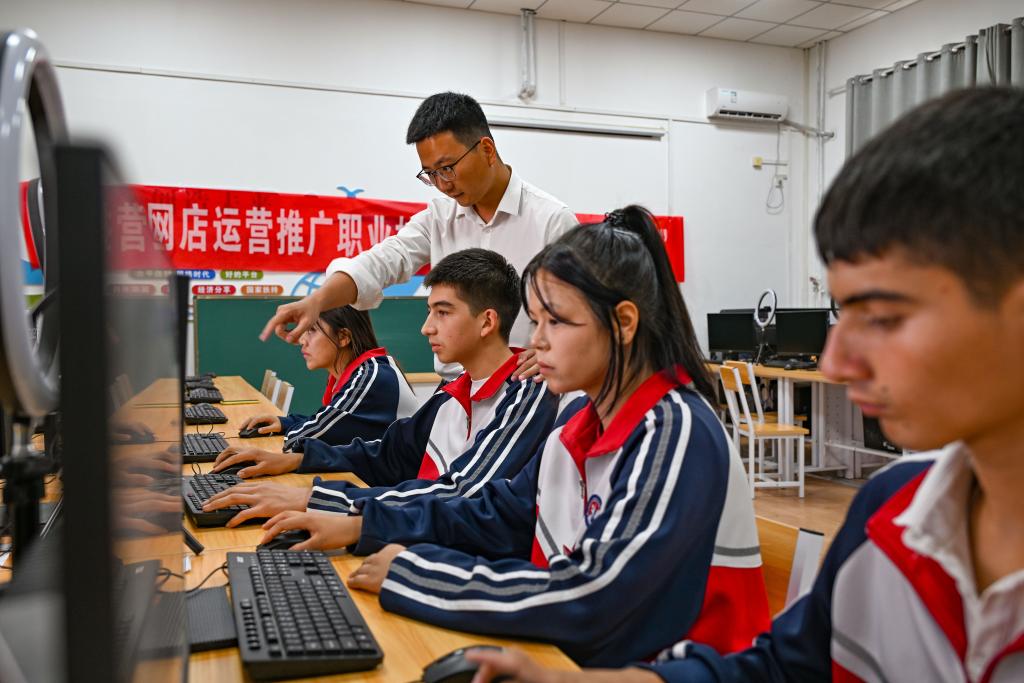 2024年9月10日,在阿拉爾職業(yè)技術學校,李斌傲在實訓室指導學生。“95后”年輕教師李斌傲是第十一批浙江臺州到新疆阿拉爾職業(yè)技術學校援疆教師中的一員。2023年2月,李斌傲前往阿拉爾任教。一年半任期結束后,他沒有選擇回到臺州,而是申請留下來,在阿拉爾繼續(xù)播撒知識的種子。新華社記者 陳朔 攝