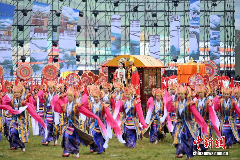 圖為開(kāi)幕式現(xiàn)場(chǎng)南木特藏戲“文成公主進(jìn)藏”演出。中新社記者 九美旦增 攝