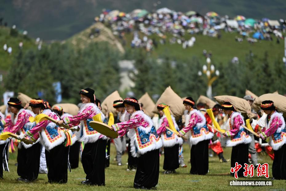 圖為開(kāi)幕式現(xiàn)場(chǎng)“萬(wàn)人鍋莊”表演。中新社記者 九美旦增 攝