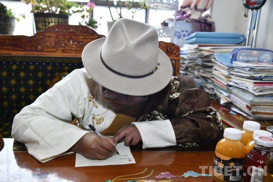 圖為噶嗎多吉為王成誠(chéng)同學(xué)寫信 攝影:趙振宇