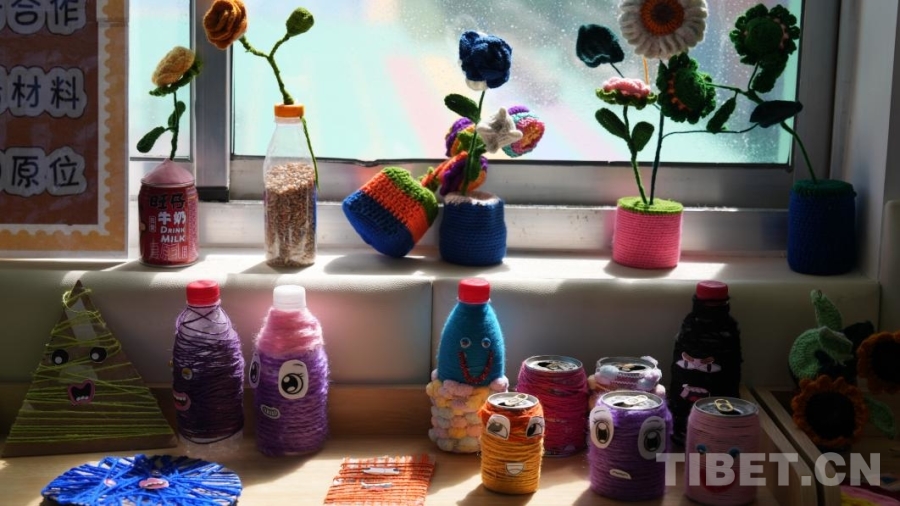 步入走廊,仿佛進(jìn)入一個由手工作品裝點(diǎn)的童趣世界。這條民族團(tuán)結(jié)文化長廊,所有裝飾作品均由師生手工完成。“民族大團(tuán)結(jié)”“中華民族一家親”等立體手工藝作品,記錄著一次次師生共創(chuàng)的成果。民族文化展示墻上,孩子們制作的多民族形象泥塑、來自云南的教師與孩子共同完成的白族扎染作品依次陳列,各民族特色服飾在這些作品中一一呈現(xiàn)。
