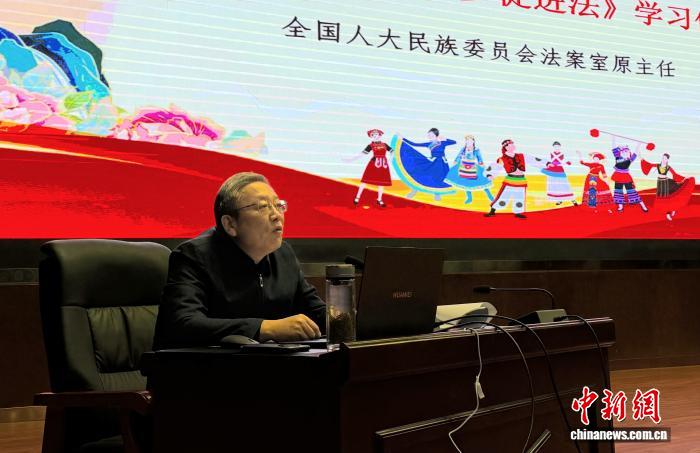 全國(guó)人大民族委員會(huì)法案室原主任彭建華受西藏社會(huì)主義學(xué)院《凝聚講壇》邀請(qǐng)向該院干部職工、學(xué)員及宗教界代表進(jìn)行了授課。會(huì)上,他介紹,這部新時(shí)代民族工作領(lǐng)域的基本法律,是新時(shí)代黨的民族理論和歷史性成就的法治化成果,是實(shí)現(xiàn)中華民族偉大復(fù)興的法治保障。