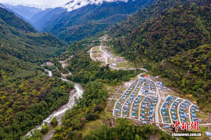 資料圖為2021年5月16日,航拍西藏墨脫縣扎墨公路沿線的貢日村,該村為舊扎墨公路80K處,是一處物資轉(zhuǎn)運(yùn)點。江飛波 攝