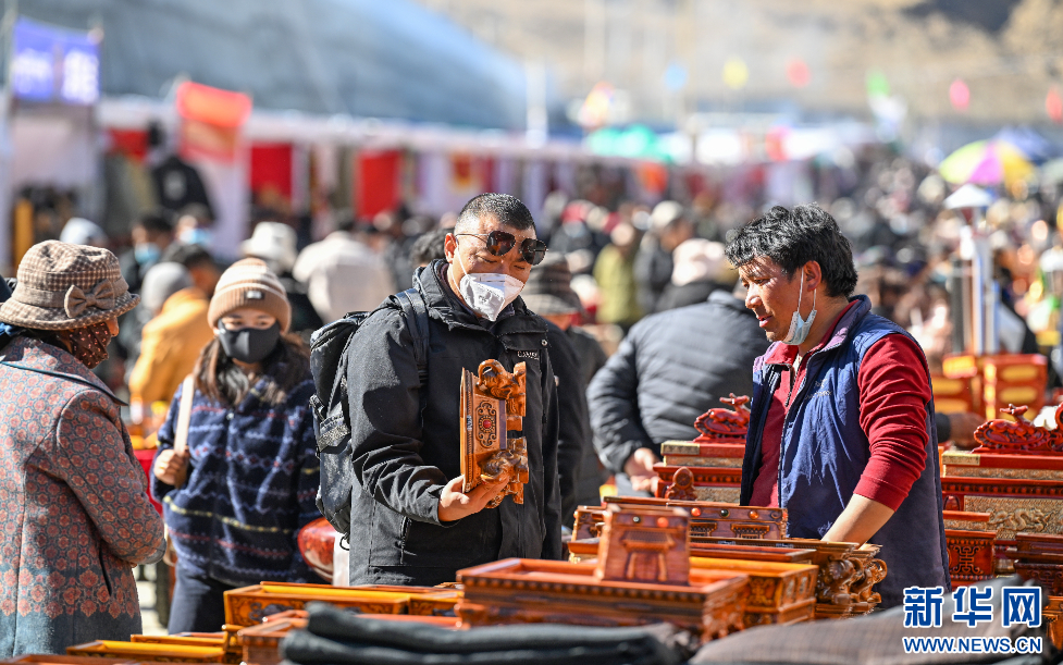 12月1日,市民在西藏自治區(qū)山南市第45屆雅礱物資交流會(huì)現(xiàn)場挑選商品。新華網(wǎng) 旦增努布 攝