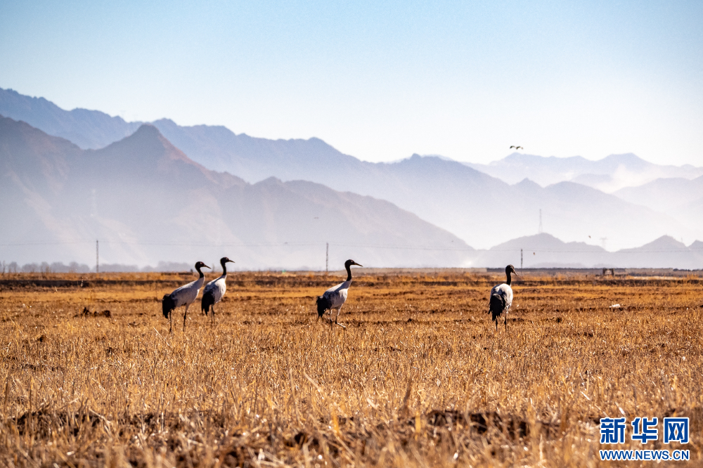 這是11月26日在西藏拉薩市林周縣境內(nèi)拍攝的黑頸鶴。新華網(wǎng) 旦增努布 攝