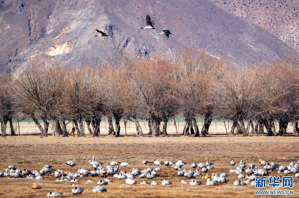 這是11月26日在西藏拉薩市林周縣境內(nèi)拍攝的候鳥。新華網(wǎng) 旦增努布 攝
