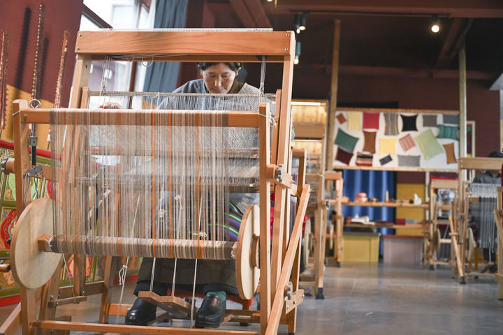 2023年4月,格桑卓瑪與其他13名氆氌手工藝人前往上海集中培訓(xùn),學(xué)習(xí)全新的技法和理念。一個(gè)月后,回到江孜,格桑率先擁抱了工藝革新。