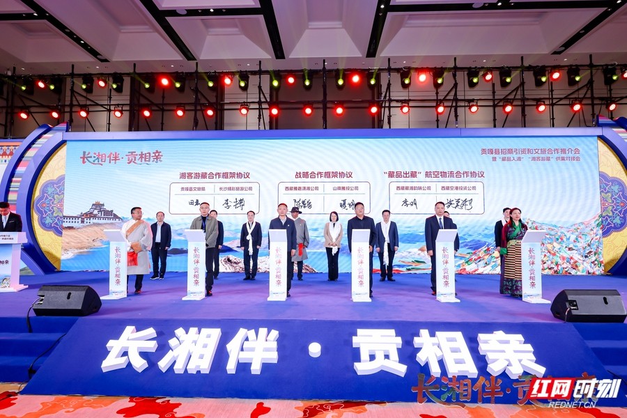在簽約環(huán)節(jié),貢嘎縣與多家企業(yè)就農(nóng)產(chǎn)品采購、文旅合作達(dá)成共識?;顒蝇F(xiàn)場還揭牌成立“貢嘎藏品入湘與湘客游藏服務(wù)中心”“貢嘎大學(xué)生入湘就業(yè)服務(wù)中心”“貢嘎區(qū)外招商引資服務(wù)中心”,推動湘藏協(xié)作走向機制化、常態(tài)化。