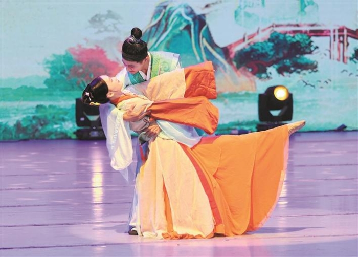 “千古的愛(ài)”篇章中,古典情思漫溢舞臺(tái)。歌舞《一曲相思》里,婉轉(zhuǎn)歌聲、靈動(dòng)舞姿,將綿長(zhǎng)相思娓娓道來(lái),臺(tái)下觀眾沉醉其中,輕隨旋律點(diǎn)頭,目光始終追隨舞臺(tái)上的身影;隨后舞蹈《王母宴瑤池》以李商隱《瑤池》為魂,舞者輕盈若仙,描摹出詩(shī)意神話意境,觀眾屏息凝視,落幕時(shí)掌聲熱烈響起。