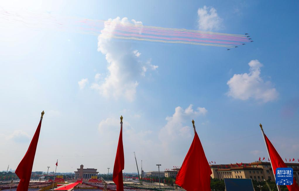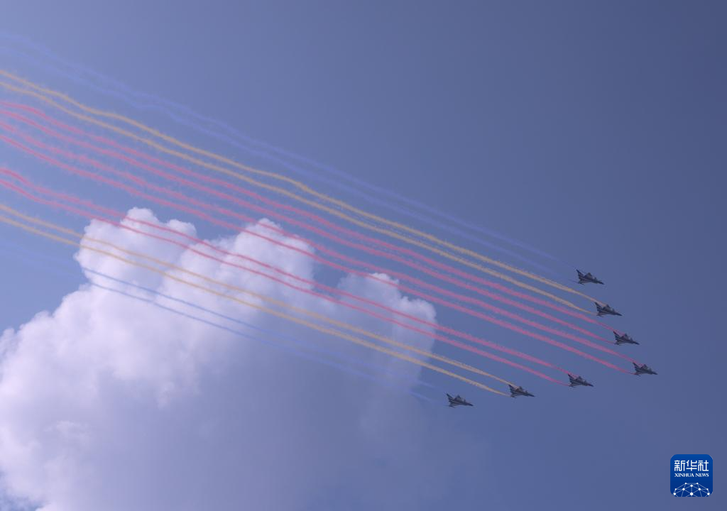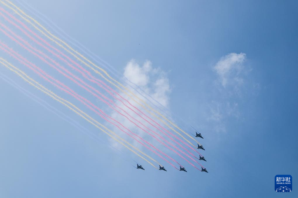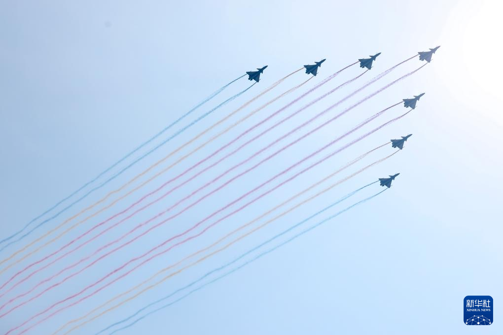 9月3日,紀(jì)念中國(guó)人民抗日戰(zhàn)爭(zhēng)暨世界反法西斯戰(zhàn)爭(zhēng)勝利80周年大會(huì)在北京隆重舉行。這是教練機(jī)梯隊(duì)飛過(guò)天安門廣場(chǎng)上空。