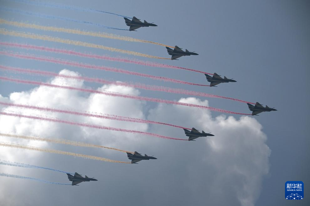 9月3日,紀(jì)念中國(guó)人民抗日戰(zhàn)爭(zhēng)暨世界反法西斯戰(zhàn)爭(zhēng)勝利80周年大會(huì)在北京隆重舉行。這是教練機(jī)梯隊(duì)接受檢閱。