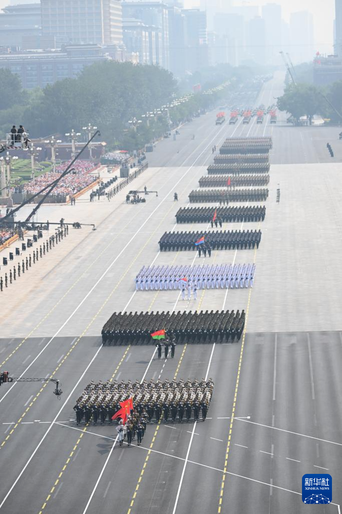 9月3日,紀(jì)念中國(guó)人民抗日戰(zhàn)爭(zhēng)暨世界反法西斯戰(zhàn)爭(zhēng)勝利80周年大會(huì)在北京隆重舉行。這是徒步方隊(duì)通過(guò)天安門廣場(chǎng)。