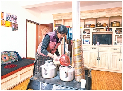 眼前這棟嶄新的二層小白樓,正是次仁普尺的新家。走進屋內(nèi),藏式家具擺放得整整齊齊,墻上懸掛的幾幅唐卡色彩艷麗,處處透著新生活的氣息。