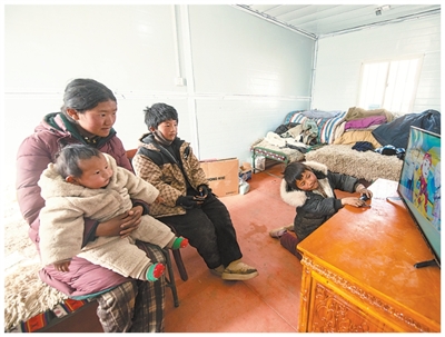 就在前一天,次仁普尺一家已經(jīng)住進了溫暖的板房。幾個弟弟正擠在電視機前爭搶遙控器,吵著要看各自喜歡的動畫片;媽媽巴桑則在一旁細心整理著被褥和衣物,將一件件物品歸置妥當。