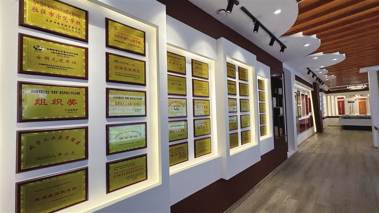 在校史館的圖片墻上,學(xué)校舉行“六一”文藝演出的照片吸引了記者的注意。從1985年羅布林卡黑白照片里孩子們歡快表演的身影,到上世紀(jì)90年代初宗角祿康公園彩色照片中孩子們慶?!傲弧眹?guó)際兒童節(jié)的文藝表演,再到1992年至2012年間,學(xué)校舉辦慶?!傲弧眹?guó)際兒童節(jié)文藝演出。20年間,學(xué)校進(jìn)一步豐富特色教育,設(shè)有管樂(lè)隊(duì)、民樂(lè)特長(zhǎng)班、手工特長(zhǎng)班、美術(shù)特長(zhǎng)班等,并組織管樂(lè)隊(duì)學(xué)生在布達(dá)拉宮廣場(chǎng)參加各類(lèi)活動(dòng),為學(xué)生全面發(fā)展搭建起更廣闊的展示平臺(tái)。