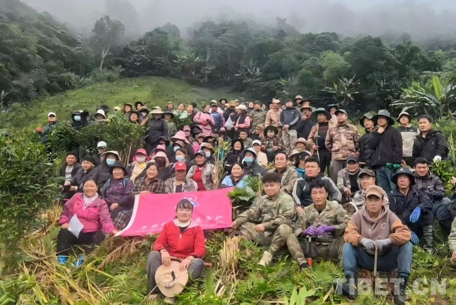 羅布央宗(第一排左一)在墨脫和鄉(xiāng)親們一同參與志愿活動 受訪者供圖