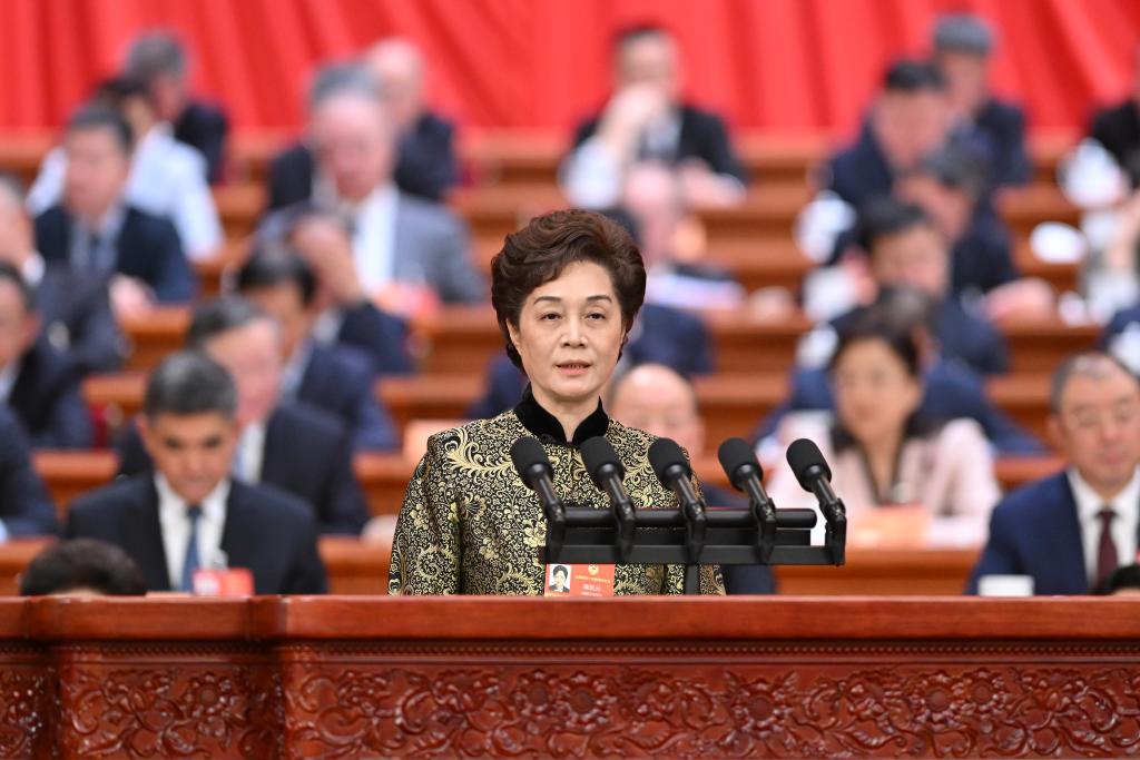 3月7日,全國政協(xié)十四屆四次會議在北京人民大會堂舉行第二次全體會議。這是賀丹委員作題為《優(yōu)化生育支持政策和激勵措施 構建積極生育保障體系》的發(fā)言。新華社記者 岳月偉 攝