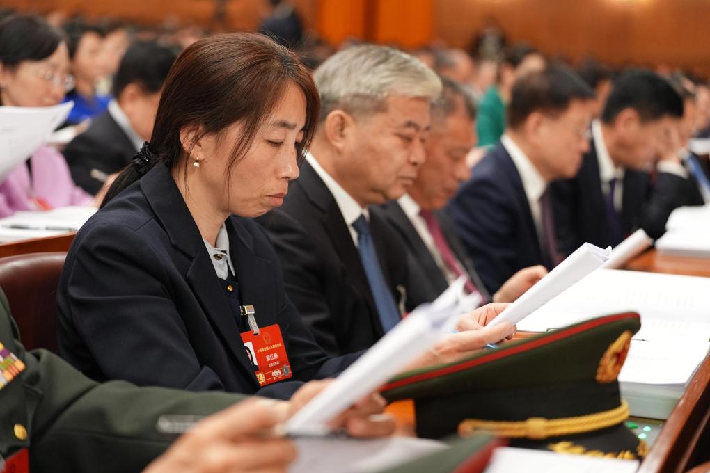 3月5日,張瓊麗代表在十四屆全國(guó)人大四次會(huì)議開幕會(huì)上聽會(huì)。新華社記者 邢廣利 攝