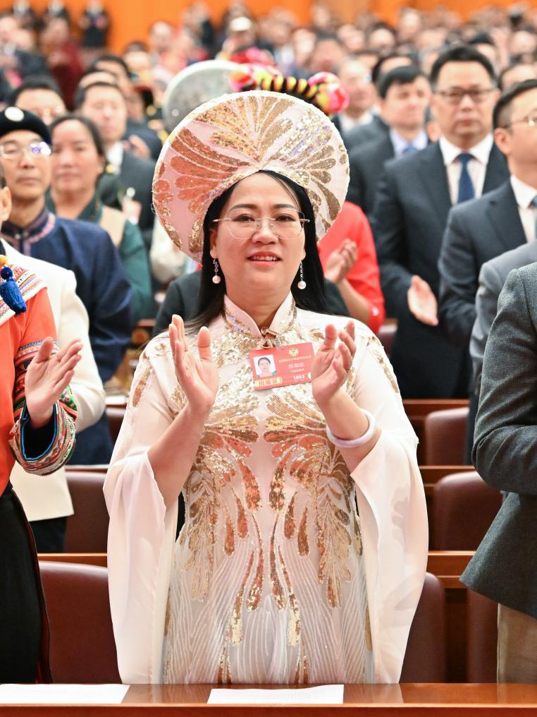 3月4日,蘇海珍委員在全國(guó)政協(xié)十四屆四次會(huì)議開幕會(huì)上。新華社記者 陳益宸 攝