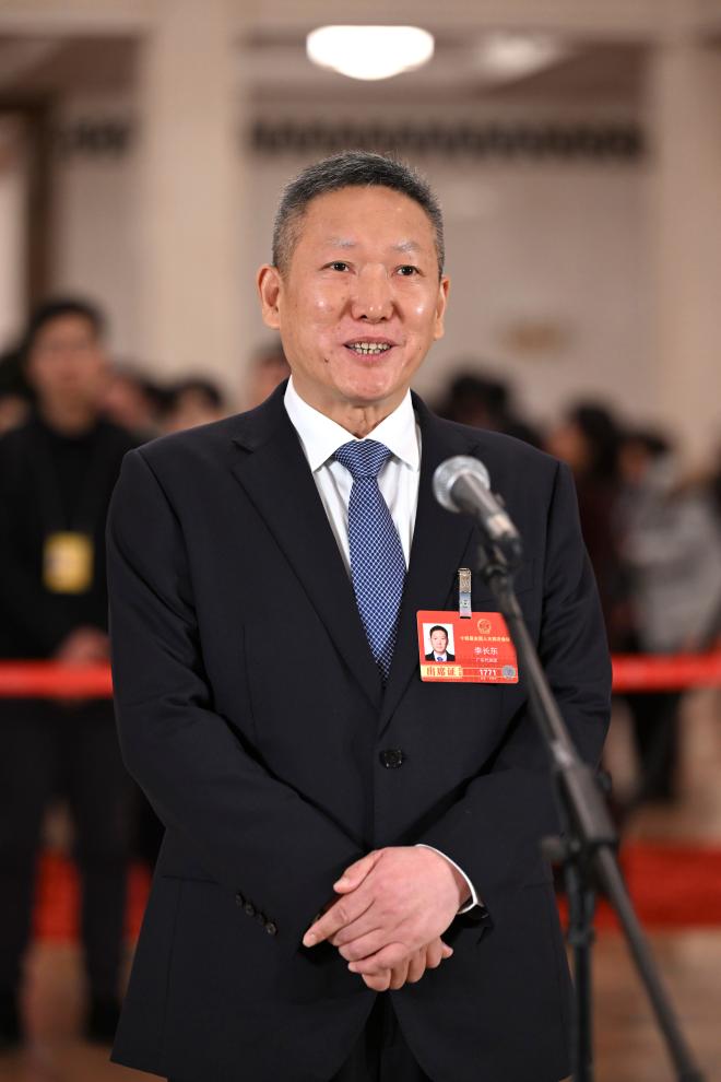 3月9日,第十四屆全國(guó)人民代表大會(huì)第四次會(huì)議第二場(chǎng)“代表通道”集中采訪活動(dòng)在北京人民大會(huì)堂舉行。這是全國(guó)人大代表李長(zhǎng)東接受媒體采訪。新華社記者 程婷婷 攝