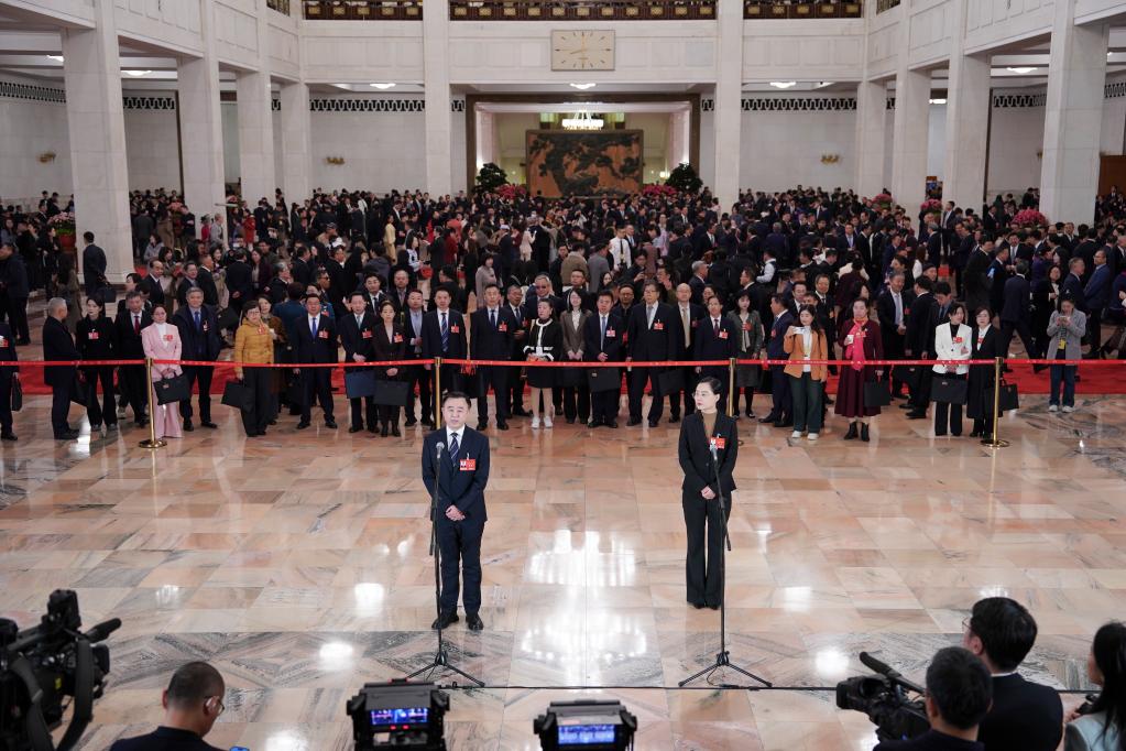 3月9日,第十四屆全國(guó)人民代表大會(huì)第四次會(huì)議第二場(chǎng)“代表通道”集中采訪活動(dòng)在北京人民大會(huì)堂舉行。新華社記者 傅天 攝