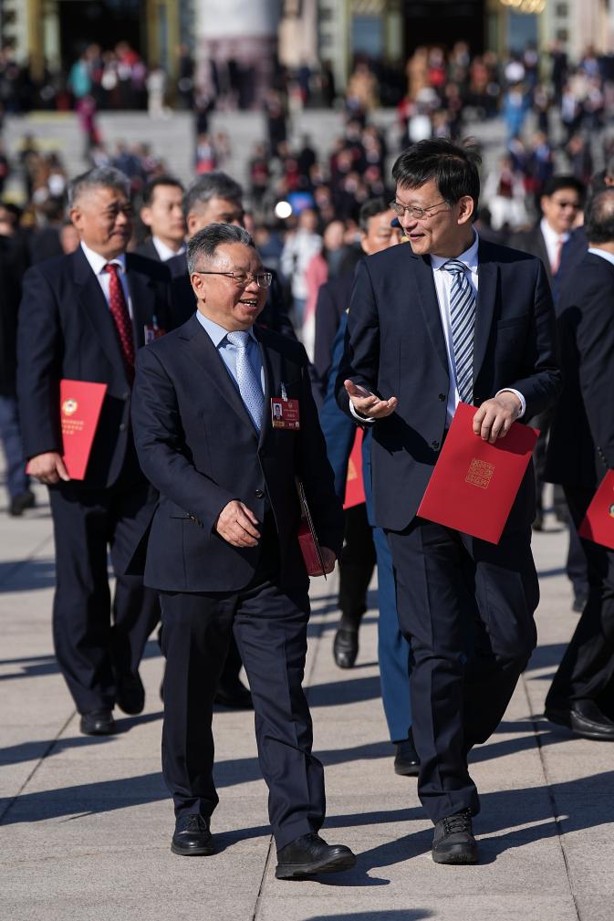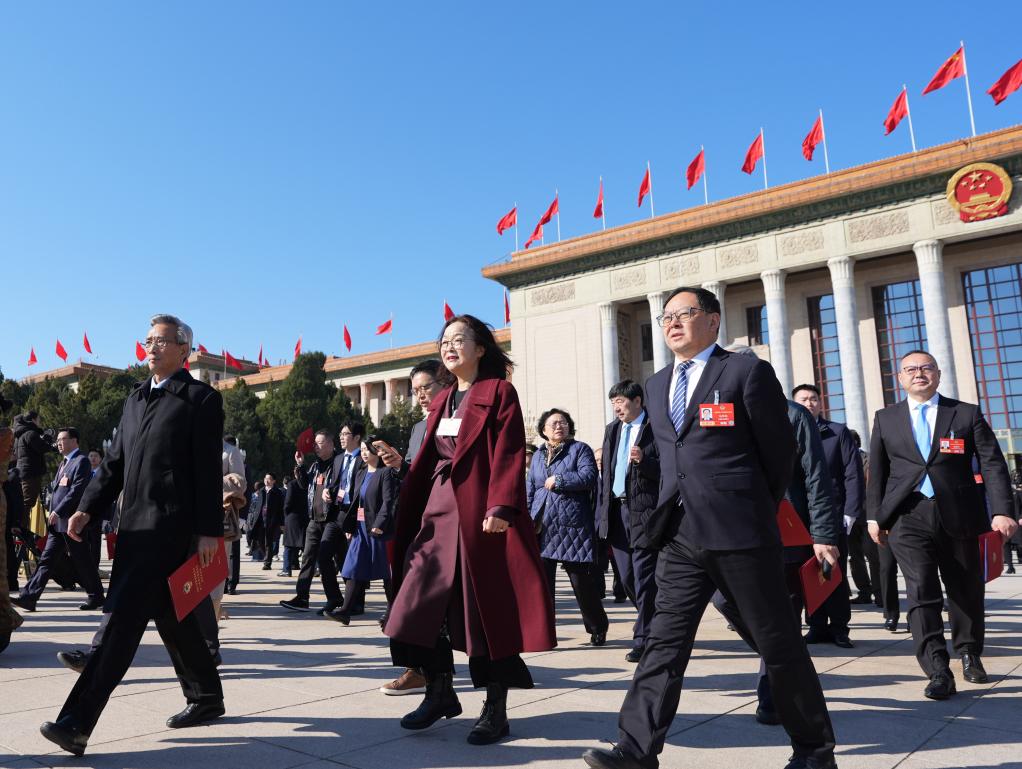 3月11日,全國(guó)政協(xié)十四屆四次會(huì)議在北京人民大會(huì)堂舉行閉幕會(huì)。這是閉幕會(huì)后,委員們走出人民大會(huì)堂。新華社記者 王曦 攝