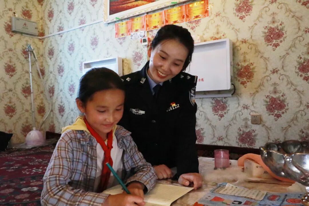 “西極愛心小分隊”家訪后了解到阿麗娜的家庭情況,民警沈美穎便成為這位柯爾克孜族姑娘的“知心姐姐”,多次到家中輔導(dǎo)功課,通過聊天談心鼓勵阿麗娜認真學習。